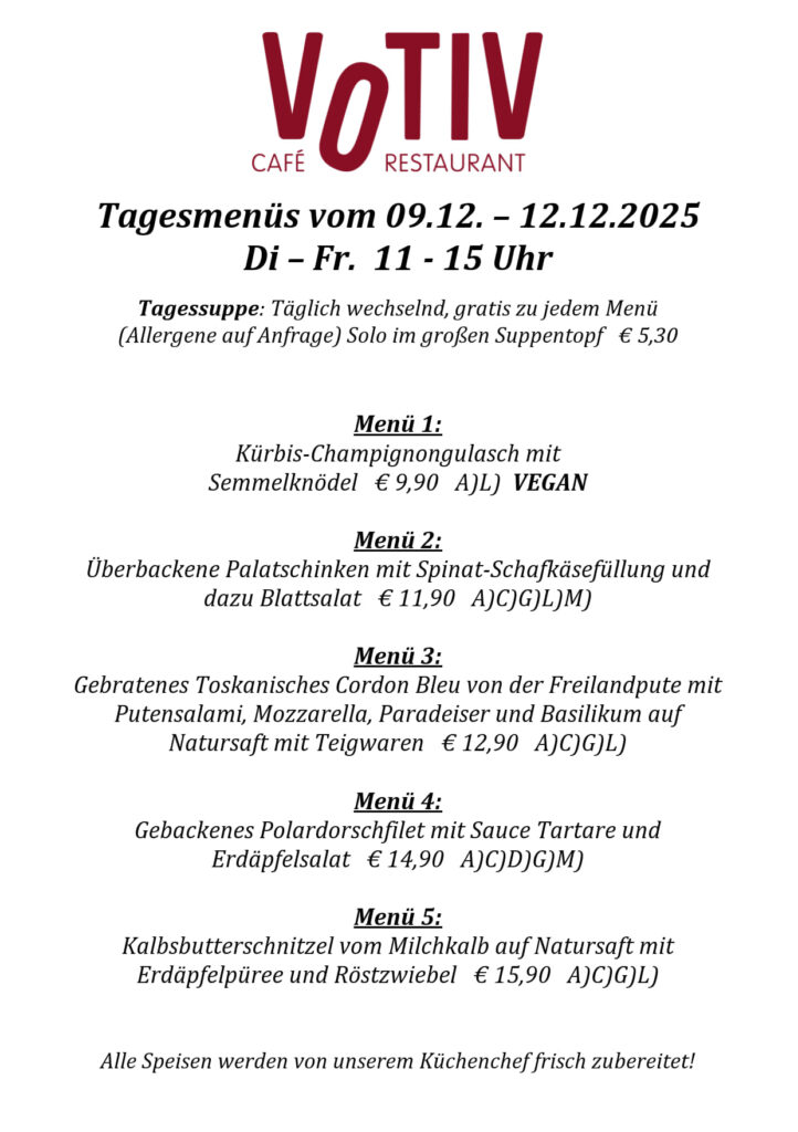 Tagesmenüs Mo. – Fr. 11-15 Uhr