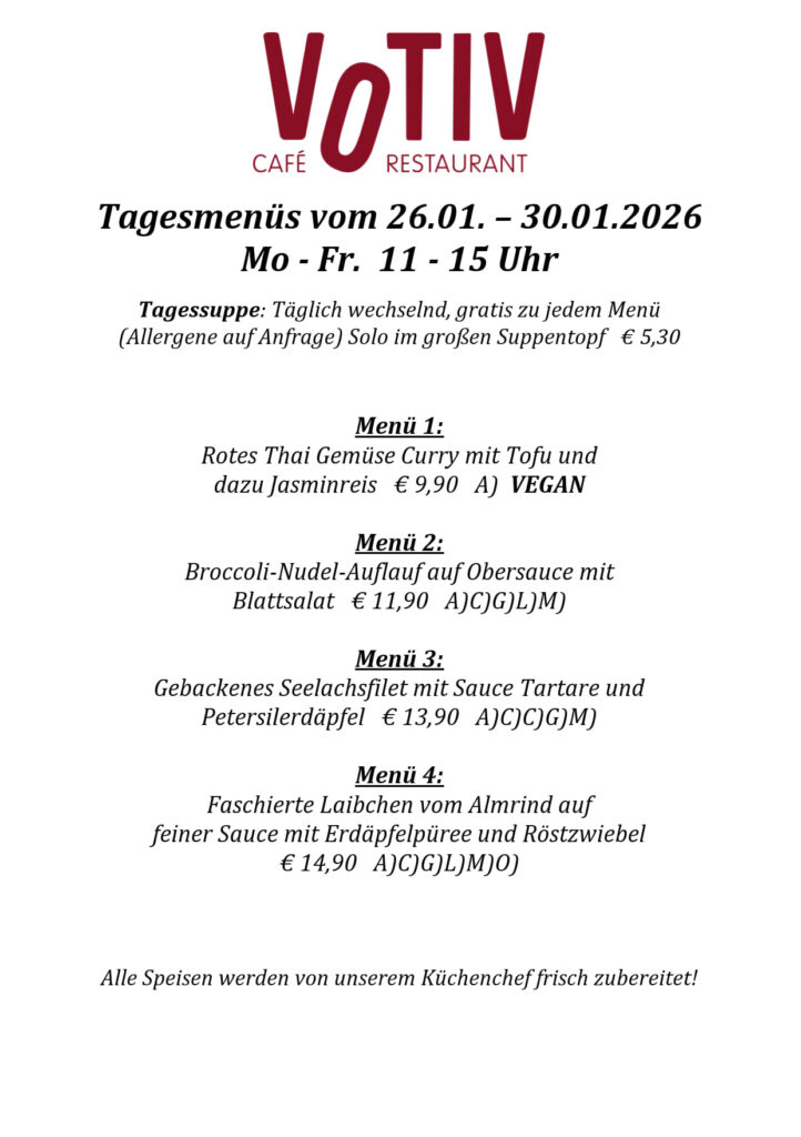 Tagesmenüs  Mo. – Fr. 11-15 Uhr